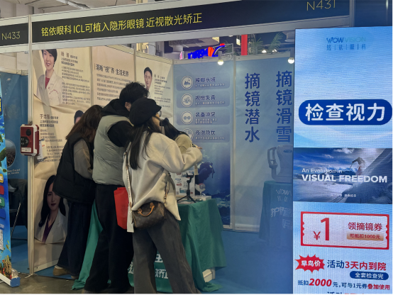 本次展会创新性地实现了潜水与滑雪两大高端户外领域的跨界融合,汇聚了全球优质户外资源、装备品牌及众多热爱探索的运动爱好者,精准覆盖“夏季潜水、冬季滑雪”的全季节户外人群,构建起高端户外生活方式交流平台。铭依眼科紧扣展会核心人群需求,聚焦ICL晶体植入相关服务,向现场观众解读这项无需切削角膜、夜视良好、适配户外运动的视力矫正相关方案,现场解答了众多近视爱好者关于术后运动适配、视力恢复等核心疑问,让大家深入了解摆脱眼镜束缚、轻松享受运动的可能。